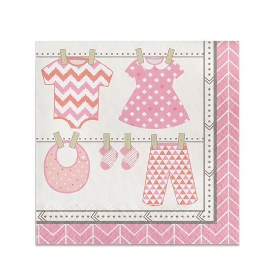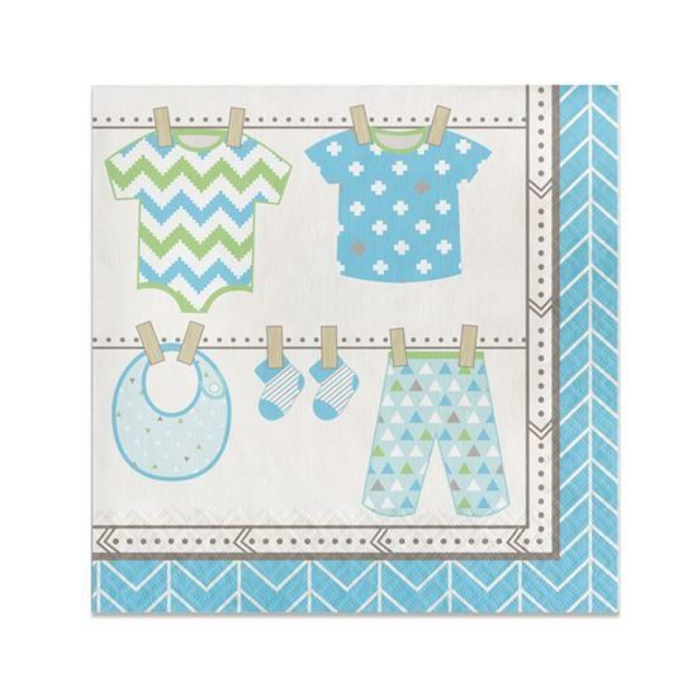 16 servetten met afbeelding waslijn