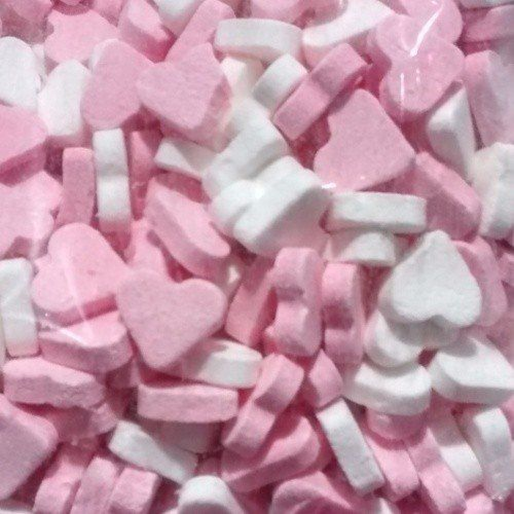 500 gram vruchtenhartjes blauw/wit of roze/wit