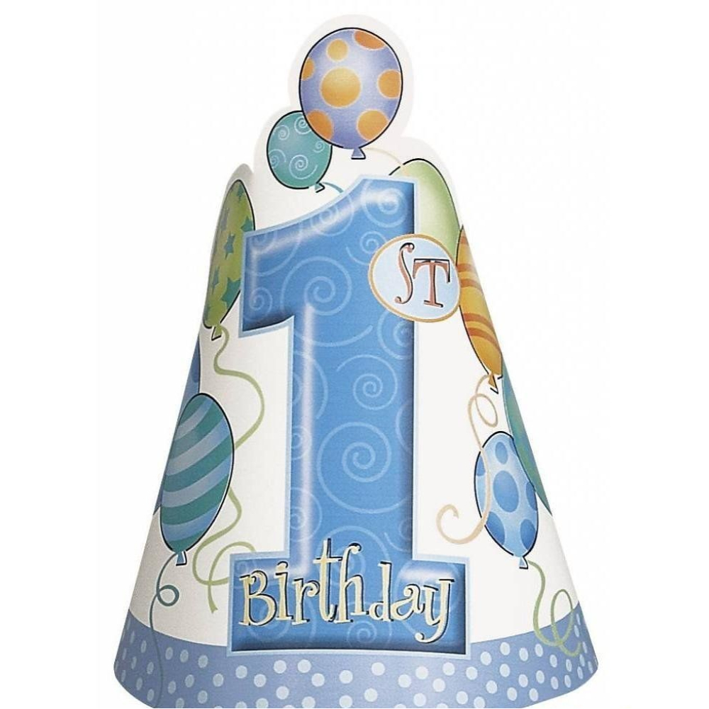 8 feesthoedjes 1 jaar roze of blauw