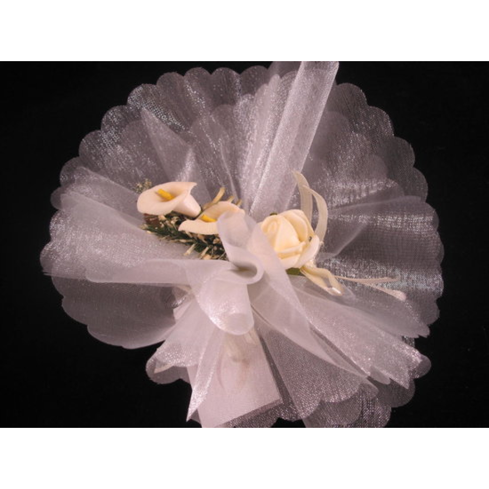 afgemaakt met een trosje lely's (arumskelk) in wit/creme