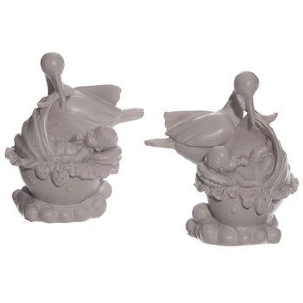 Beeldje baby met ooievaar wit