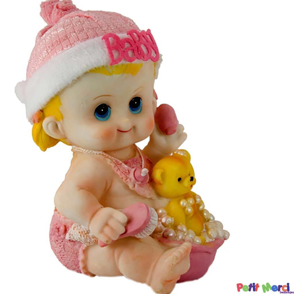 spaarpot zittende baby met speelbeestje