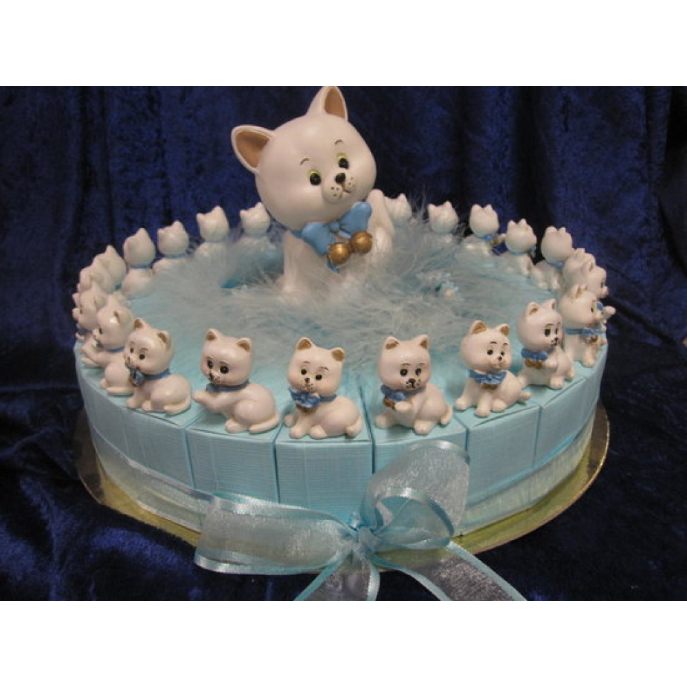 taart 24 doosjes met poesjes in blauw